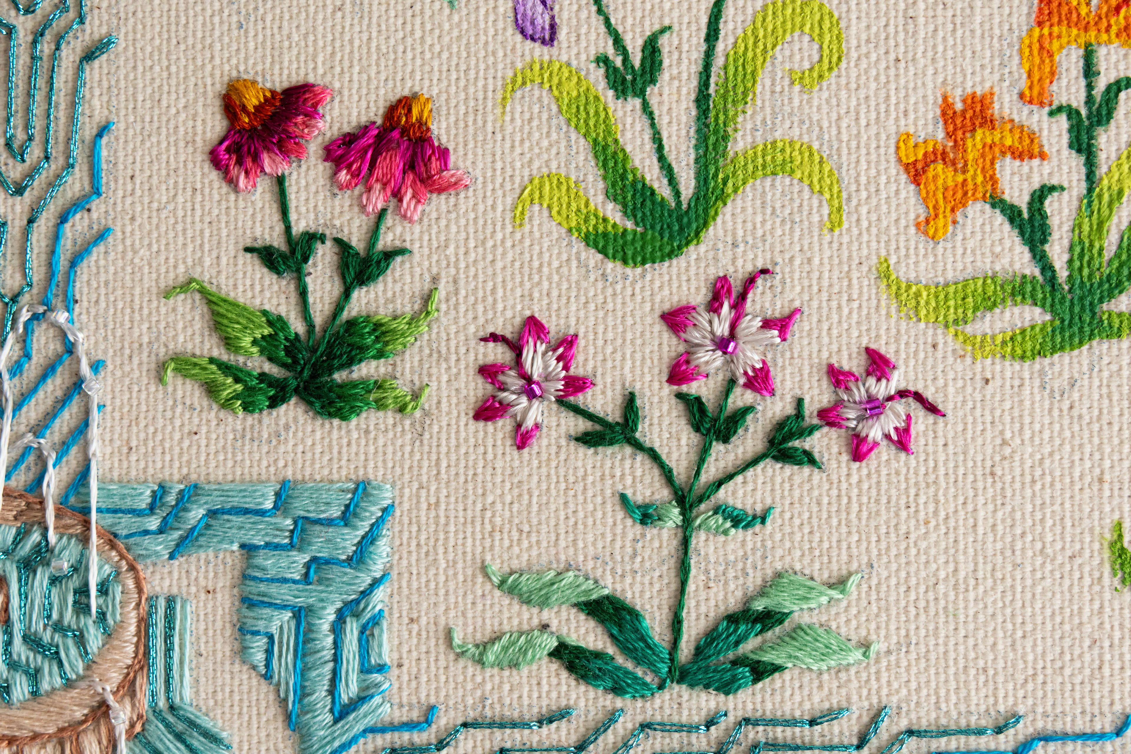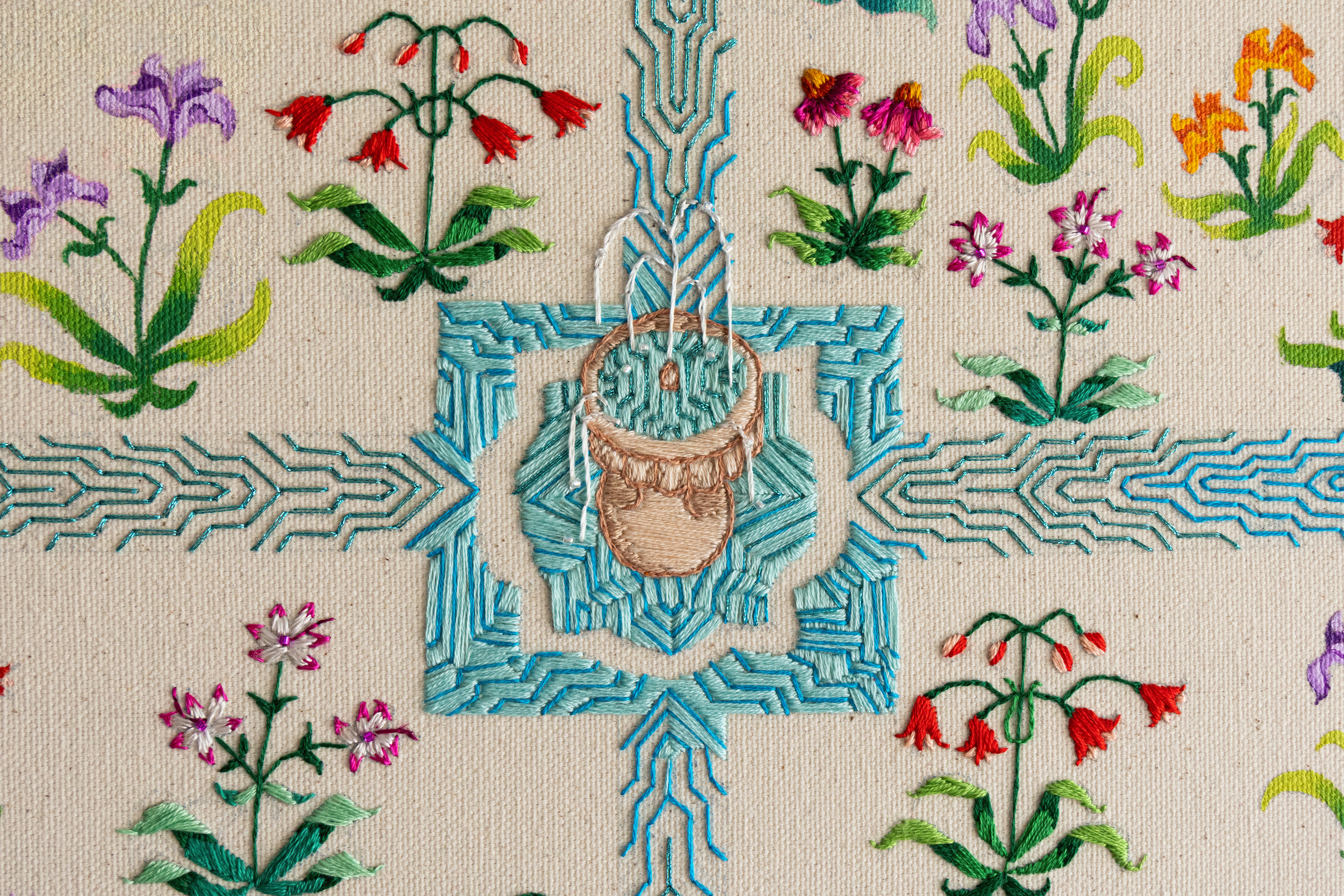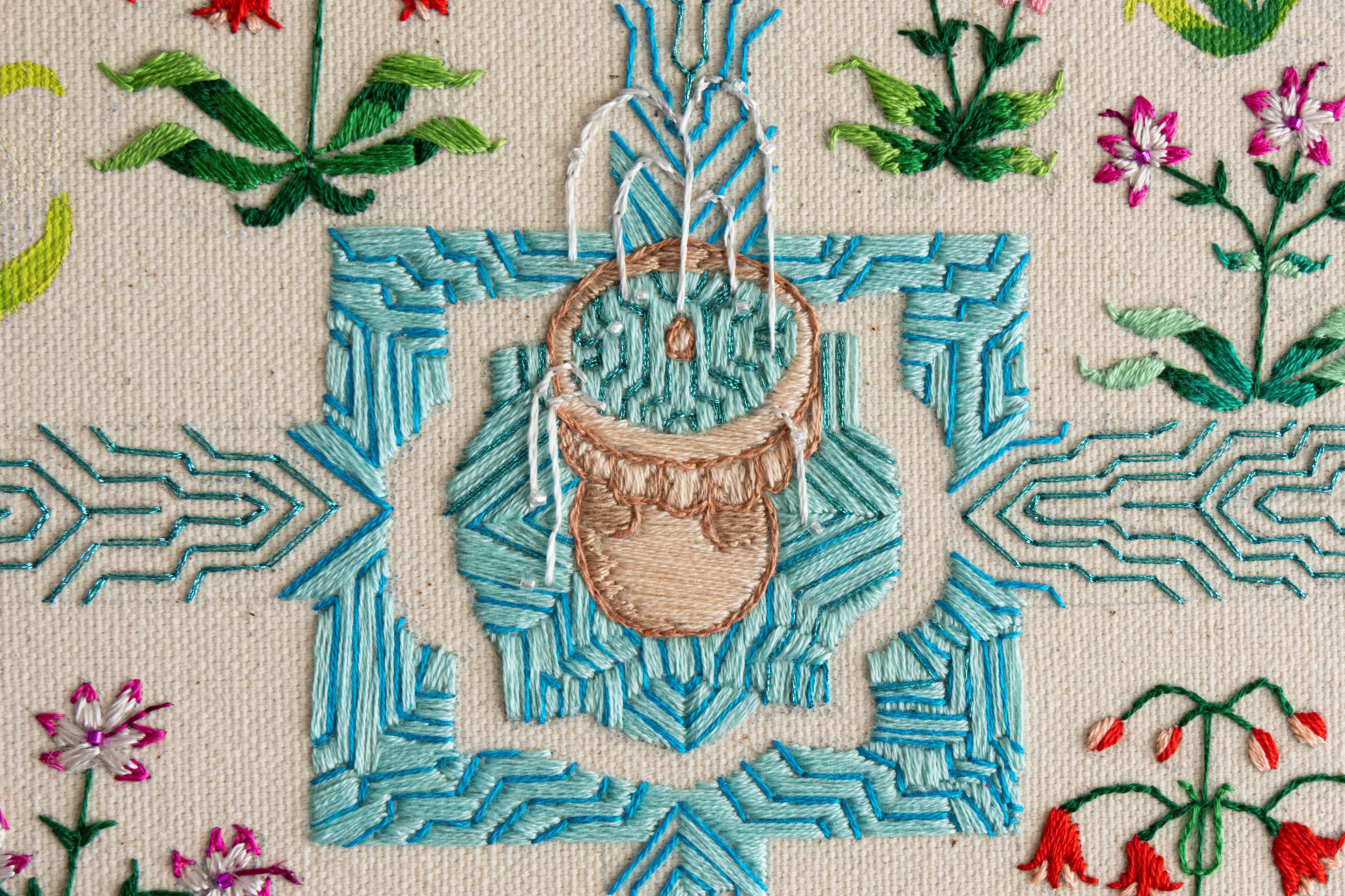 Tilted canvas to show embroidery and beading details